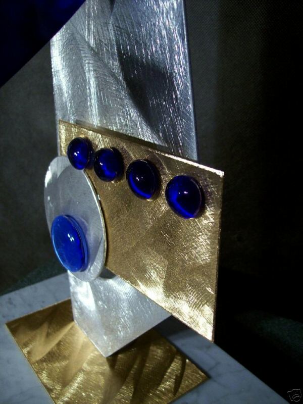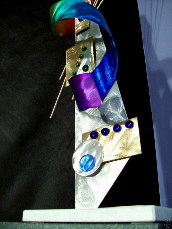 The “swirling” designs are hand grinded into the metal. My famous “holographic” effects that I developed in 2006 and perfected in color in this metal art form, comes to life at any light source one can imagine of, no matter how weak it is. This is a main feature in my work that is duplicated worldwide. Just about all metal artists who decided to hijacked my style, my designs and technique, are trying to profit from this popular “merchandise… 🙂
