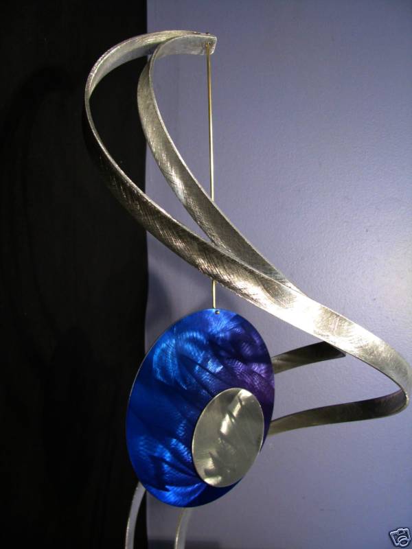 My sculptures are made of the highest grade industrial aluminum available. The transparent anodized enamel that I use is specially developed for aluminum. The colors are protected by the “lacquer” coating that is actually urethane, which blocks out the harmful ultra violet rays of the sun The hangers and the spacers are hand fabricated from aluminum also and designed to line up the plates accurately on the multi panel wall sculptures.