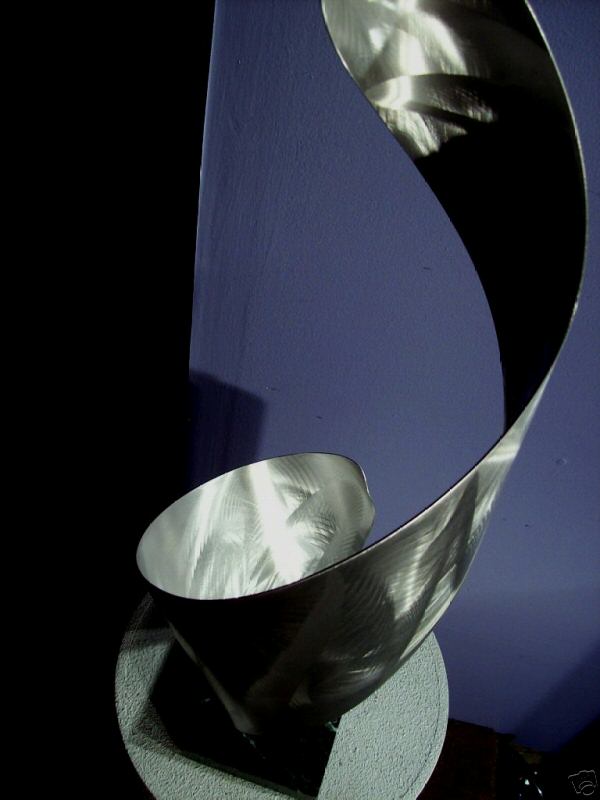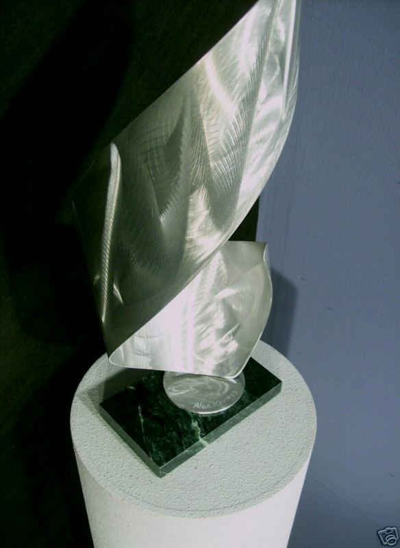 I do care a lot about getting the sculpture out to you and of course in a perfect shape. It is carefully dusted and inspected by myself… however there are little imperfections, small dust specks in the lacquer or tiny droplets from the “spitting” spray gun. These are some of the things that are out of my (or anybodys) control. Sometimes the material leaves the factory with small dents and marks, where I do my best to fix it up… all these are no worse than what you could see on any artwork even at a museum. As you will see, I go out of my way to pack your sculpture up for you safely. If the box has no signs of damage when you received it, then the art work was not damaged either. I will not take responsibility for any damage that happens to the sculpture after it was removed from the box. Recently one of the customers who purchased my work through an art gallery claimed that the box was not damaged, yet they had already cut it up and thrown it out, before they realized a few days later that the corner of the plate was curled up about one inch diagonally… Therefore, guess who is at fault? Of course me!!! I have vinyl flooring at my shop, yet the corner was roughly gauged by either a stone, or a rough cement floor. I think you get the message. Please be careful handling these plates, do not drop them if possible. Of course if it happens, I will do my best to repair it. Yet there will be a fair charge (not based on profit) and you have to cover the shipping expenses. Also, please make sure that you are using some kind of anchor screws, (you can buy them at any hardware store) to hang the sculpture. A small nail, especially in a plaster board wall might get loose, and the sculpture could fall off…Guess I bored you long enough, thank you very much for supporting the arts…:)