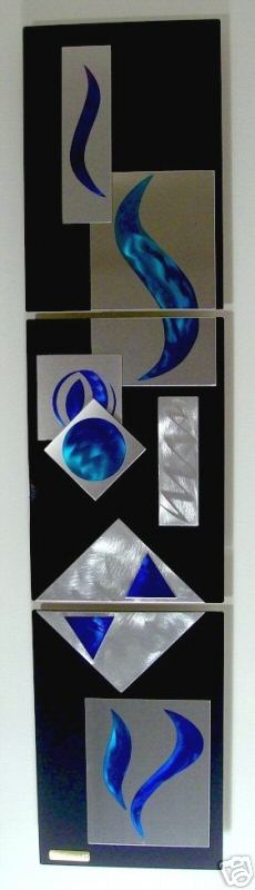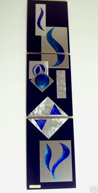 My sculptures are made of the highest grade industrial aluminum available. The transparent anodized enamel that I use is specially developed for aluminum. The colors are protected by the “lacquer” coating that is actually urethane, which blocks out the harmful ultra violet rays of the sun The hangers and the spacers are hand fabricated from aluminum also and designed to line up the plates accurately on the multi panel wall sculptures.