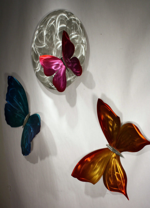 DIMENSIONS: This group is arranged in about a 36″ x 36″ area. The blue butterfly is 12″ Wide x 10″ High.