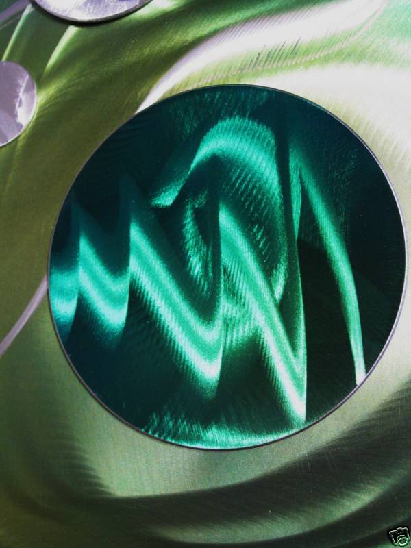 The “swirling” designs are hand grinded into the metal. My famous “holographic” effects that I developed in 2006 and perfected in color in this metal art form, comes to life at any light source one can imagine of, no matter how weak it is. This is a main feature in my work that is duplicated worldwide. Just about all metal artists who decided to hijacked my style, my designs and technique, are trying to profit from this popular “merchandise… 🙂