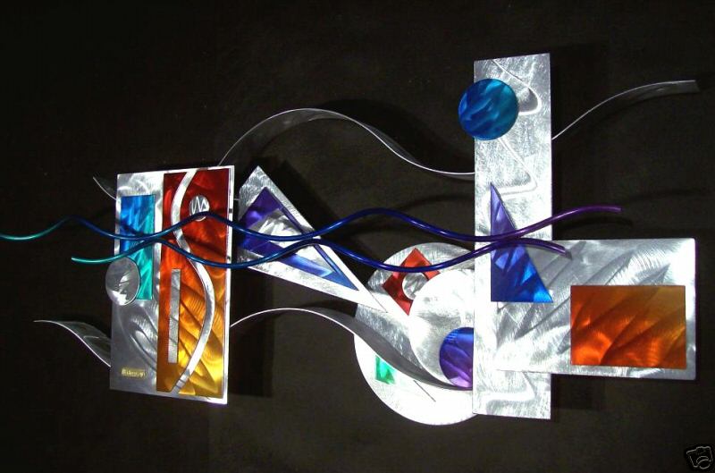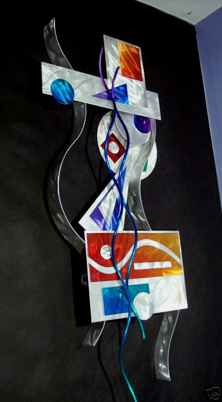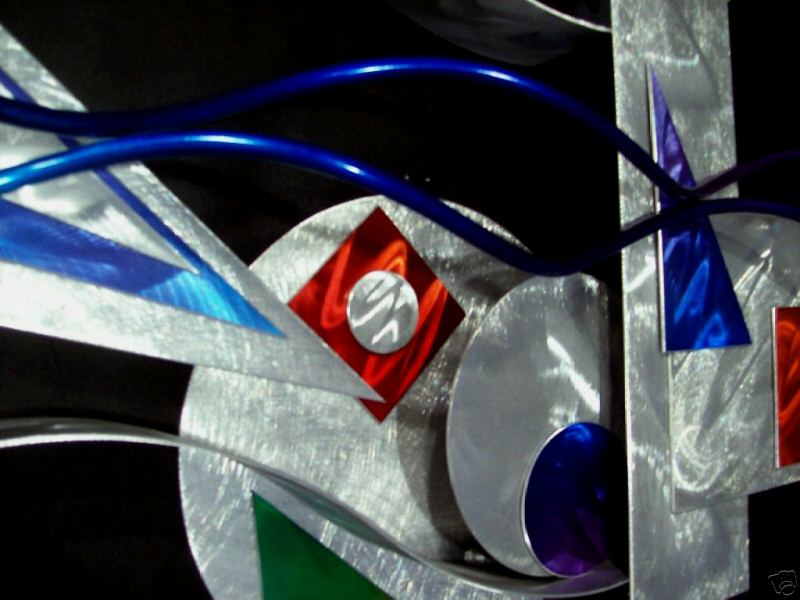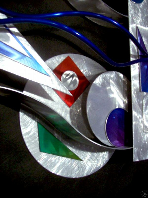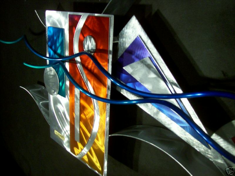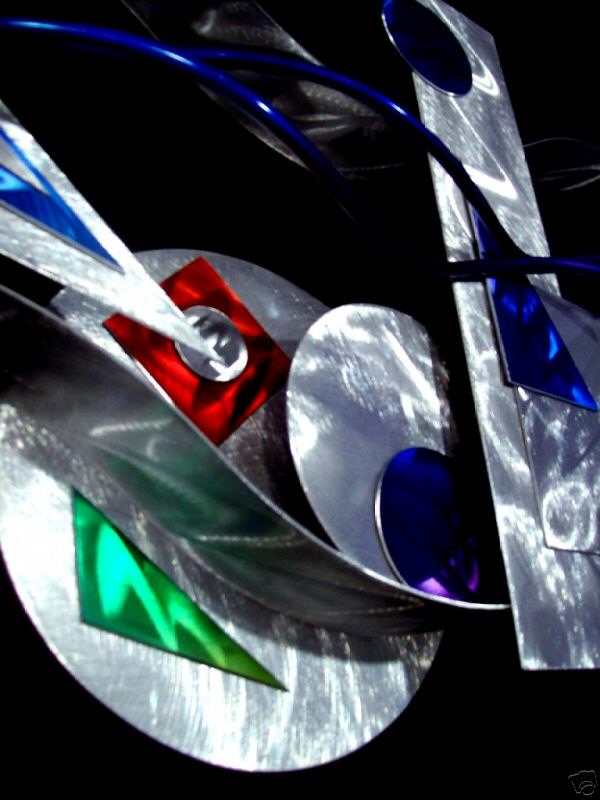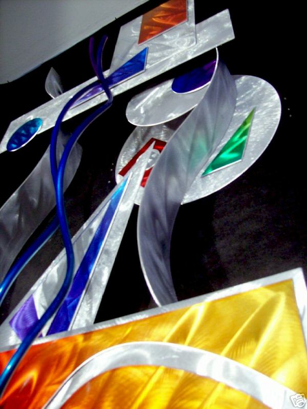 My sculptures are made of the highest grade industrial aluminum available. The transparent anodized enamel that I use is specially developed for aluminum. The colors are protected by the “lacquer” coating that is actually urethane, which blocks out the harmful ultra violet rays of the sun The hangers and the spacers are hand fabricated from aluminum also and designed to line up the plates accurately on the multi panel wall sculptures.