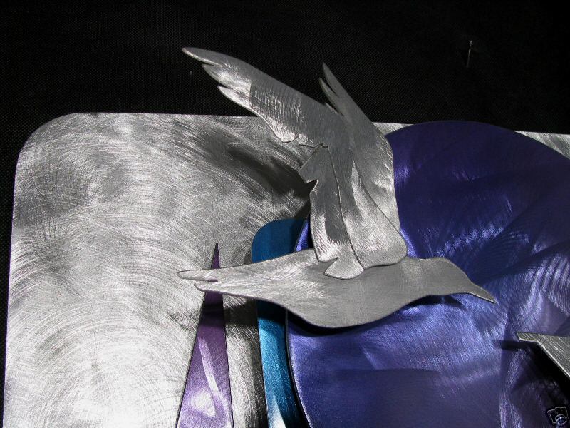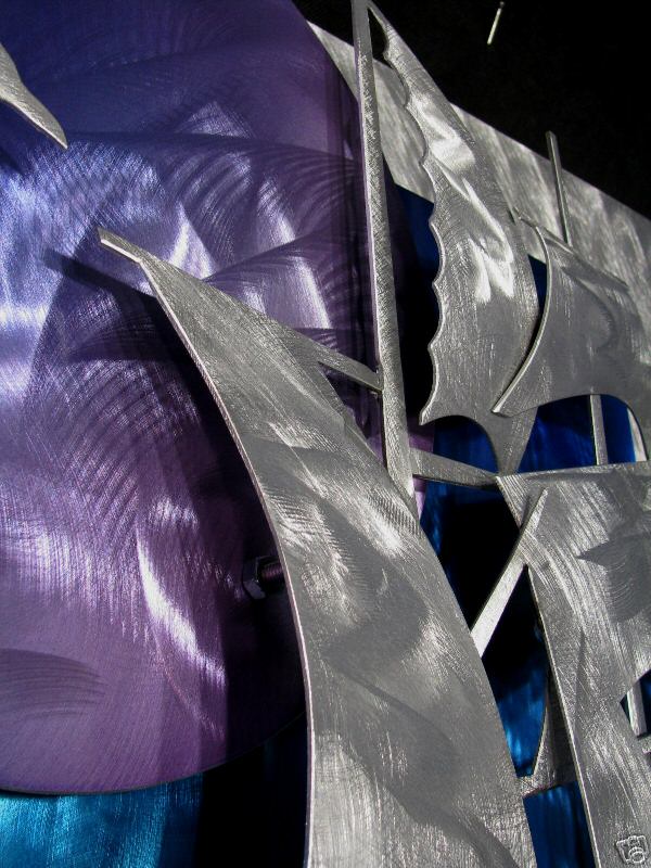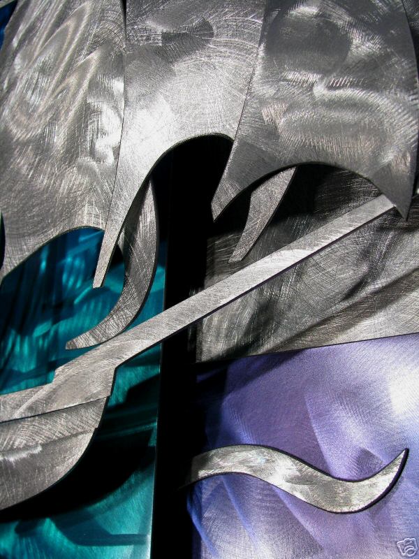 The “swirling” designs are hand grinded into the metal. My famous “holographic” effects that I developed in 2006 and perfected in color in this metal art form, comes to life at any light source one can imagine of, no matter how weak it is. This is a main feature in my work that is duplicated worldwide. Just about all metal artists who decided to hijacked my style, my designs and technique, are trying to profit from this popular “merchandise… 🙂