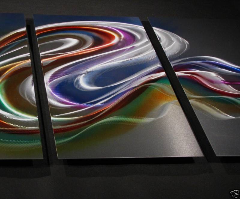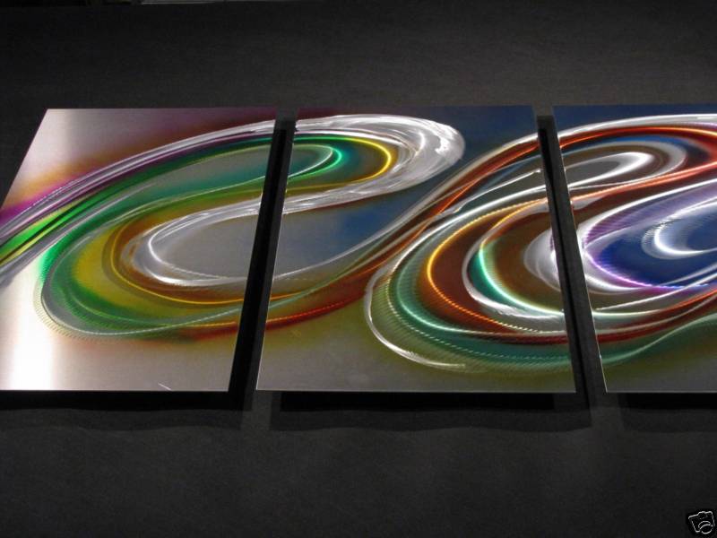 My sculptures are made of the highest grade industrial aluminum available. The transparent anodized enamel that I use is specially developed for aluminum. The colors are protected by the “lacquer” coating that is actually urethane, which blocks out the harmful ultra violet rays of the sun The hangers and the spacers are hand fabricated from aluminum also and designed to line up the plates accurately on the multi panel wall sculptures.