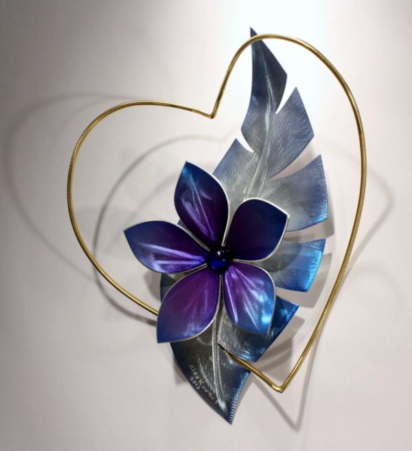 Metal Wall Sculpture, Metal Wall Art, Heart with Flower Love Art, Design by Alex Kovacs – AK475