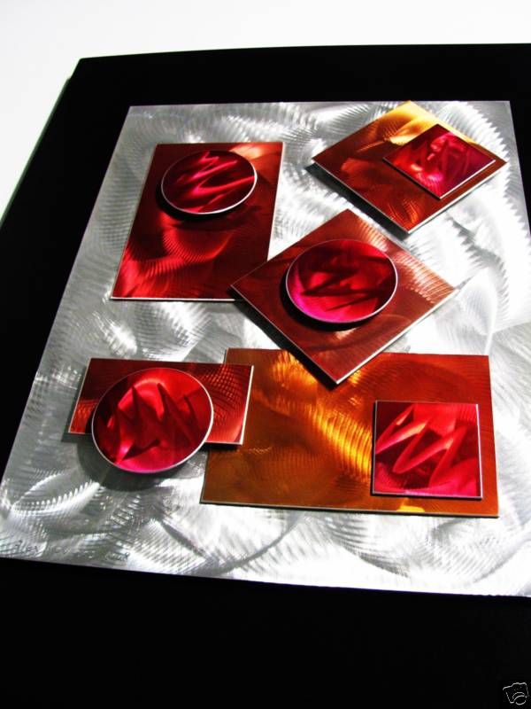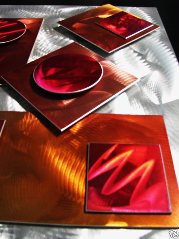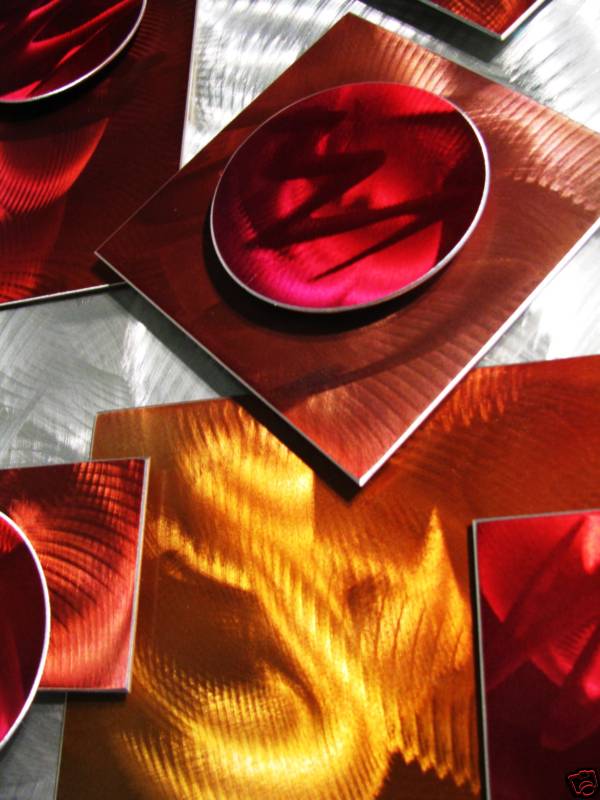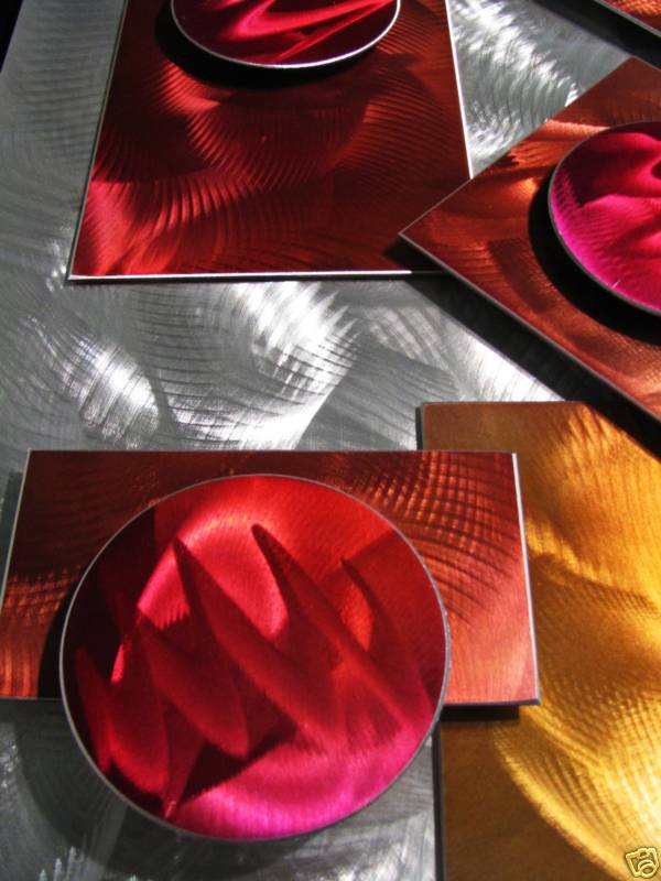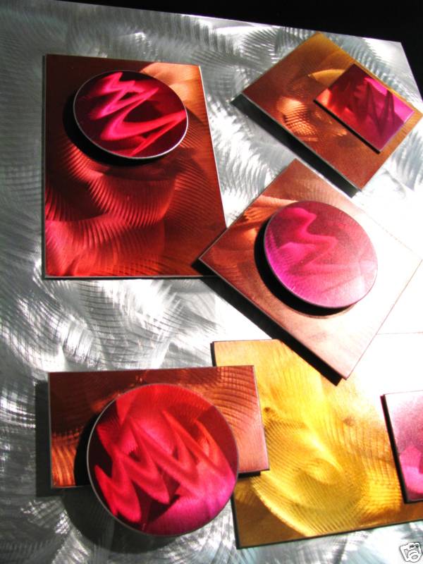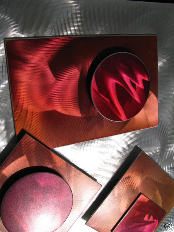My sculptures are made of the highest grade industrial aluminum available. The transparent anodized enamel that I use is specially developed for aluminum. The colors are protected by the “lacquer” coating that is actually urethane, which blocks out the harmful ultra violet rays of the sun The hangers and the spacers are hand fabricated from aluminum also and designed to line up the plates accurately on the multi panel wall sculptures.