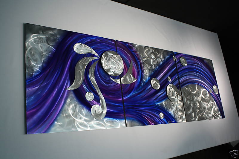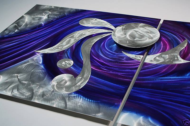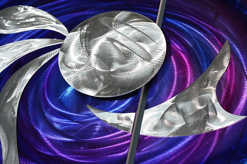 The “swirling” designs are hand grinded into the metal. My famous “holographic” effects that I developed in 2006 and perfected in color in this metal art form, comes to life at any light source one can imagine of, no matter how weak it is. This is a main feature in my work that is duplicated worldwide. Just about all metal artists who decided to hijacked my style, my designs and technique, are trying to profit from this popular “merchandise… 🙂